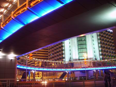蓝色的装饰非常醒目的勾勒出天桥的轮廓。