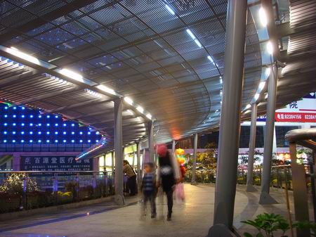 从桥下往上看,天桥更象是一个庞大的商场。