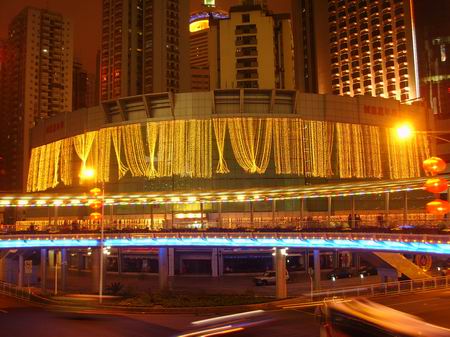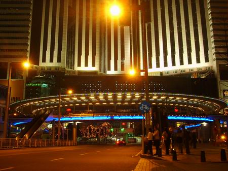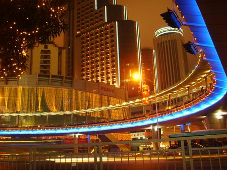 无数彩灯把天桥装饰得奢华迷离,靠右边那幢摩天楼就是深圳国贸大厦