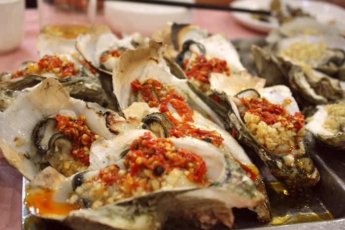 类似茶餐厅的粤菜馆,汤水和菜式的出品都不错,环境一般,但干净简洁,而性价比较高;上下渡路的烧生蚝一直相当有名,最近摆街边的档口少了,而最好吃的还是品汤居出品;蚝只个大而新鲜,清烧清甜,蒜蓉浓香,不少人冲着这里的生蚝而来,所以经常人头涌动门庭若市,人多自然就较为嘈杂,所以说话都要大声点,来这里吃饭,想不“豪”都难。