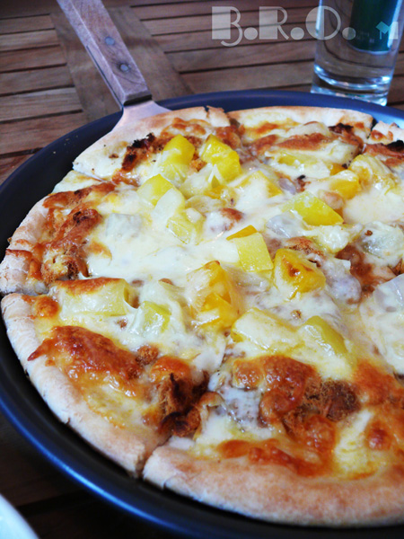 广州最好的PIZZA之一,店面虽然有点小,但胜在楼层较高,装修别致;出品的pizza自然就是主打,饼底香脆,馅料丰富,浓浓的芝士香,芝士还可以拉出丝,的确真材实料;十寸以上的PIZZA,口味还能自由双拼;价格也不算太贵,服务恰到好处,气氛恬静,感觉好舒服、好放松,最适合情侣或两三知己来聚会聊天。