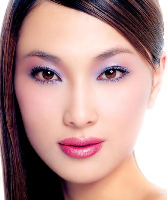 3.扔掉那些让你看上去老气横秋的过时眼影!大胆选用蓝色、淡棕色甚至粉红色系。下眼睑边扫上颜色比眼影淡一点或深一点的眼影,可使双眼有青春梦幻之美。