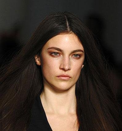 中分的发型一直都是模特们的最爱,加上发尾处的一点弧度,却显出一分动感的味道。