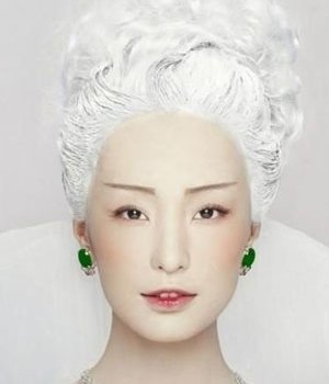 纯白色的发髻,高高的束在脑后做蓬松的大卷,前额上没有一丝多余的修饰,凸显了精致的五官,在加上以白色为主色调的妆容,烘托出了童话奇境中精灵的高贵纯洁形象。