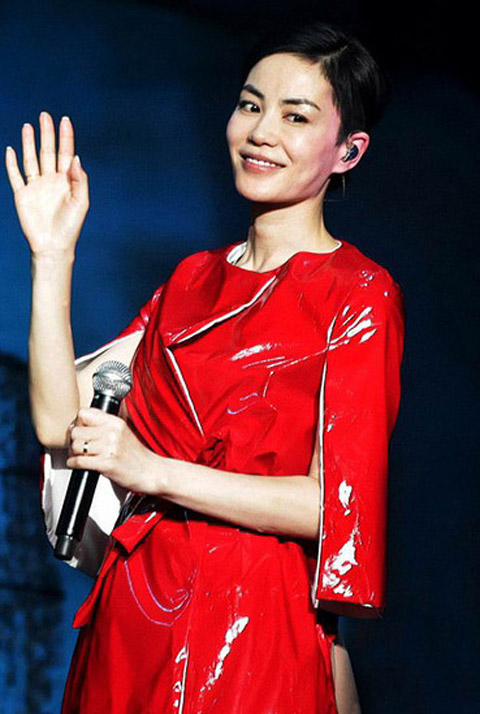 这是一款非常个性的女生短发发型,让王菲看上去十分前卫。