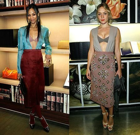 左:Zoe Saldana 右:ChloeSevigny 以上,均为PRADA Bra。同学们认为谁搭配的比较美? 很有可能它会变成一种潮流——以高腰长裙搭配胸围出现的复古味道。但要穿出门,仍视乎勇气而定,瘦而有料是最好,瘦而料平是其次。
