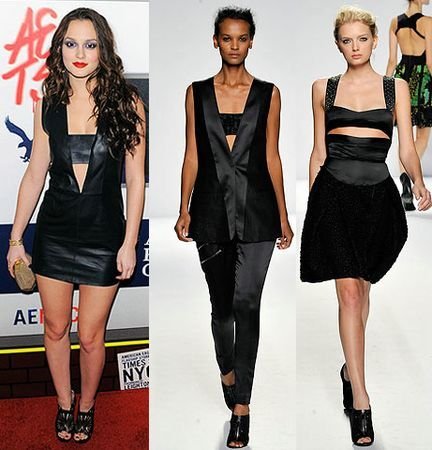 贝嫂这种穿法,如今已经不时兴了,犹如50年代两截式泳衣的小礼服最近倒是层出不穷,很活泼,很青春。个人认为效果要比简单的抹胸小礼服有趣。若你已经厌倦了前者,不妨试试看它吧。