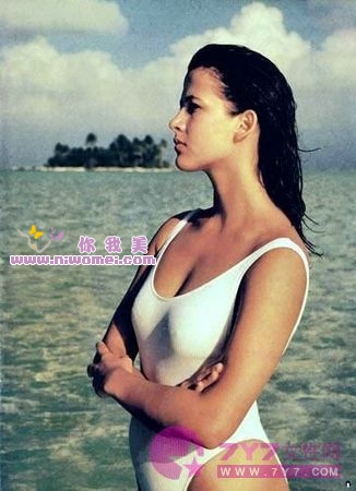 《007》系列首位邦女郎一身纯白的比基尼,宽宽的腰带斜挂猎刀,充满着原始的美丽和野性。她健康的蜜色皮肤和硬朗的身材让人窒息。此后的邦女郎都是朝着性感这一方向发展着。