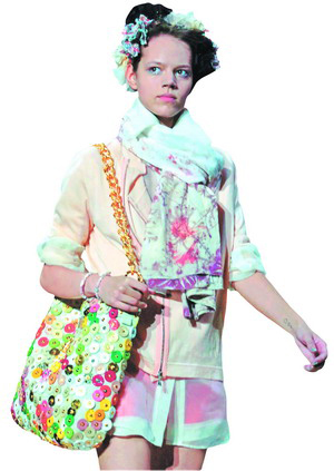 本季各大品牌也将花朵开在大包上,Gucci的碎花大包柔美动人,Louis Vuitton缀满包面的彩色小圆片。热门的涂鸦大包更是个性十足。