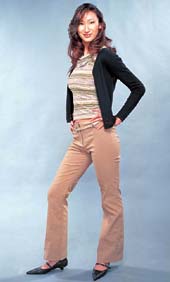 牛仔裤:牛仔裤虽好,但是也要注意选择。体胖者应避免穿瘦窄型牛仔裤,而选择不强调体形的较宽松的直筒型牛仔裤。具有清洁感的白色牛仔裤可配原色色系的T恤。上下统一成白色,会破坏整体的美感。避免着用臀部过大、裤管过窄的牛仔裤或经水洗加工后色泽反显不自然的牛仔裤。上下身搭配得再好,鞋子若挑选得不伦不类,整套搭配也就功亏一篑。牛仔裤与皮鞋相配时,浅帮船鞋最为合适。具有粗犷风格的圆头皮鞋也与牛仔裤般配。记住,穿牛仔裤时最忌脚上套一双尖头皮鞋,尖头皮鞋应该同西服配套。