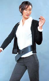 干练之选:对比强烈的黑白两色常给人以明快醒目之感,但一定要注意把握好整体的节奏。中性的白衬衣确立了整套服装的干练基调,今春会非常流行的宽皮带不但突出了这种干练,在视觉上还起到了调节整体节奏的作用。
