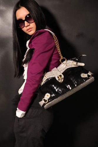 奢华的皮草和鳄鱼皮的组合,绝对是今秋最IN的搭配,袋口倒山的形的设计,更是此款包的设计亮点,优雅高贵中却带点野性!绯闻女孩,亮出你的绝招!