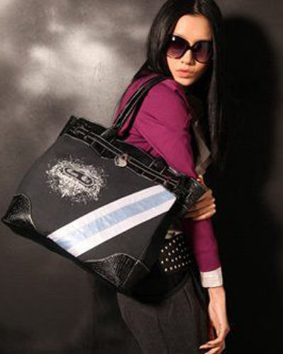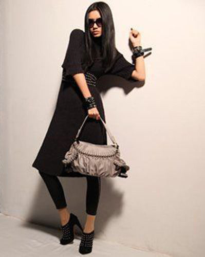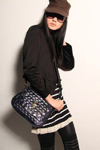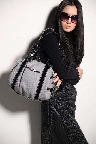 低调的黑色,帆布交织PU,纵使是在迷雾寒冷的冬季,也要翻出流行盛夏的水蓝色抹上一瞥,八卦天后总有自己的张扬方式。