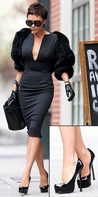 设计师让Victoria Beckham穿上这件礼服的同时,配上了与之相衬的价值高达795美元的伊夫圣洛朗4英寸高跟鞋。