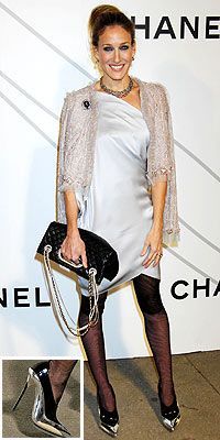 在纽约的一次香奈儿活动中,时尚人士Sarah Jessica Parker穿上双色的巴黎世家金属跟的高跟鞋再次上演时尚狂潮。