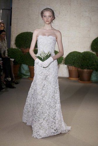 备受社交界尊崇的时装品牌Oscar de la Renta以设计名贵华丽的礼服著称,因为讲究工艺质感又强调高贵品位,而得到众多明星和社交名媛的喜爱。那些精妙绝伦的刺绣和蕾丝、层层叠叠的缎带、雪纺风琴褶和花瓣层摆足以满足每一个女孩对婚纱的所有期盼。