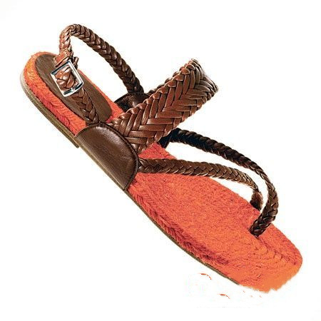 深棕配橘色编织平底凉鞋 Hermes