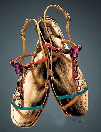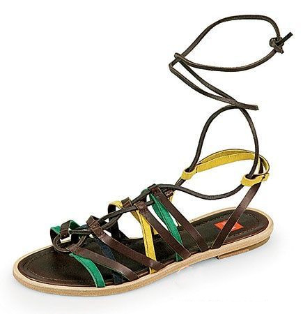 今夏,罗马式复古风格凉鞋席卷整个T台,而一双平底的、以漆皮或彩色皮质拼接,并带有精致绑带设计的罗马式平底鞋,才是流行中的王道。