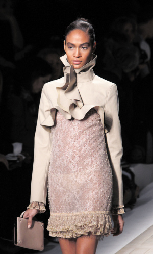 最适合在女孩女人之间徘徊的MM的Miu Miu,用鲜艳的色彩、蝴蝶领、花苞裙等。Erin Fetherston今季还是复古为主题。Valentino秋冬季秀场满眼荷叶边与蕾丝,加入大量荷叶边的领子袖口裙摆,正装也变得格外柔美。