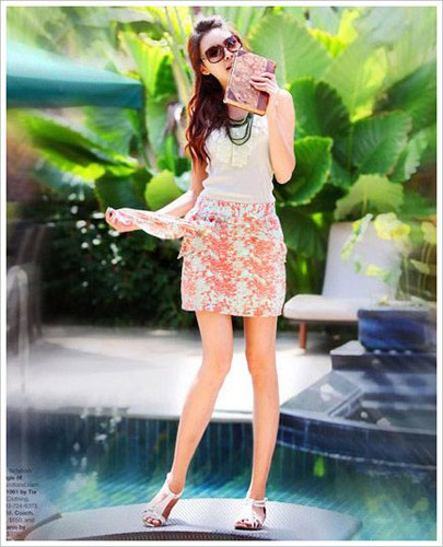 时尚点评:绚烂的窄短裙也是度假时的好选择。展现好身材的同时,印花的绚烂还可以给你带来一份好心情。这样的印花短裙,搭配素色白T吧,色彩设计繁复的上衣只会给你带来莫名的烦躁感。