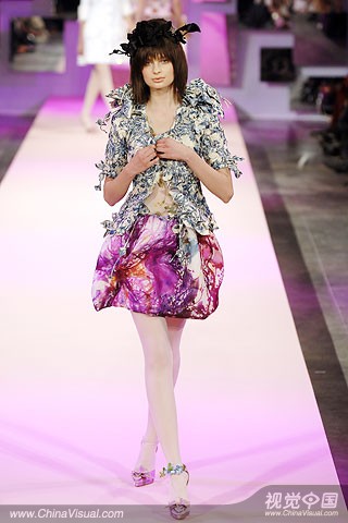 堪称本季高级定制服重头戏的ChristianLacroix在本季依旧华丽无比。擅用多重色彩与奢华素材的设计师以鲜丽贵气的印花雪纺薄为底色,再现高贵豪华、灿烂夺目的典型风格。充分体现了对服装设计独特性的执著与无穷无尽的理念实践,坚持了手工艺术价值永远不灭论.