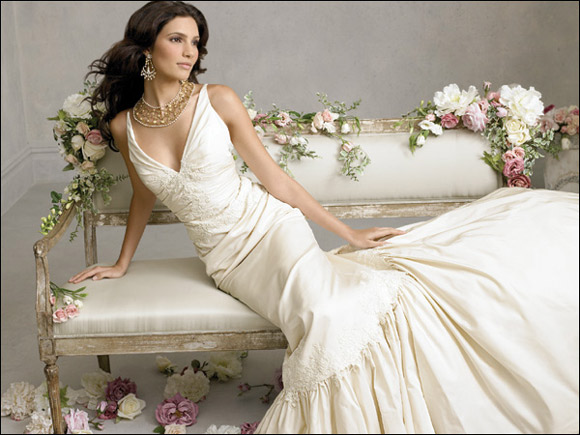 丝绸婚纱的多变新娘魅力
