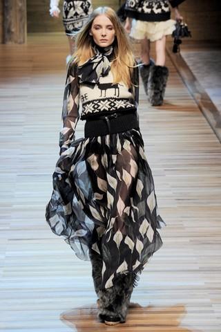 害怕落入俗套?可以在裙子的长度上做文章。选择Erdem和D&G的长半裙。《时尚》的编辑Sarah Harris说:“别害怕穿着长半裙出门。长半裙不一定代表隆重。长半裙搭配针织衫,是2010秋冬系列里的主要造型。在小黑裙的海洋里,你一定脱颖而出。
