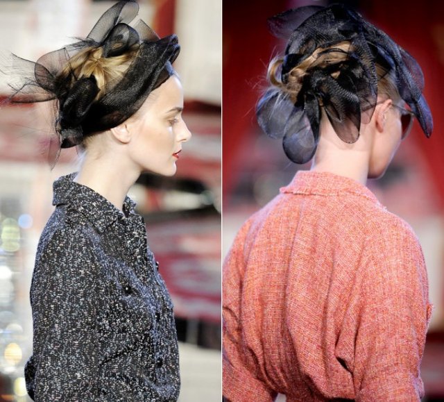 在2010春夏时装秀场中,都出现了大大小小的,造型各异的蝴蝶结,并在模特们的头上翩翩起舞,成了其中的焦点之一。无论是雪纺的,缎带的等多种面料的可爱的蝴蝶结都被设计师们搬到T字舞台上了。不难想象,蝴蝶结又复活了,应该是2010春夏的潮流之一吧。