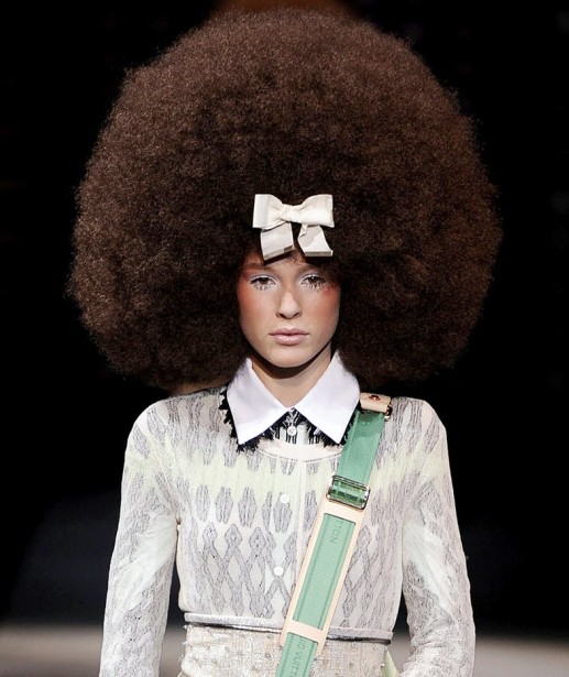 巨大无比的爆炸头跟小小的蝴蝶结形成很大的对比,总觉得小蝴蝶在爆炸头上有点迷失。