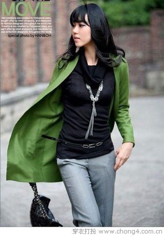 深绿色似乎与优雅如影随行,搭配黑色或白色,都会提升好感度。