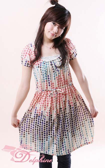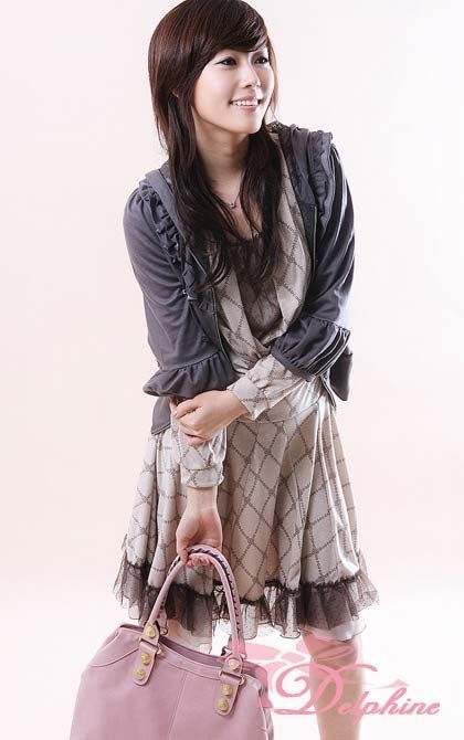 整体的灰色调因为褶皱与蕾丝而可爱,格子连衣裙加一件深色小