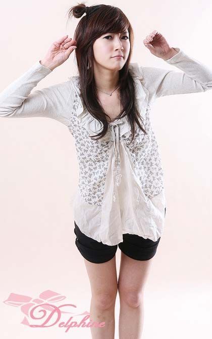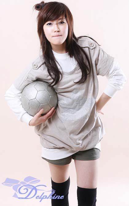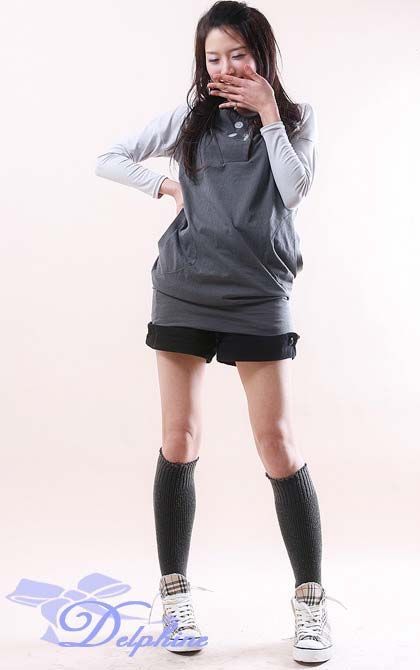 长袖纯白T恤外套一件长衫,长筒袜搭配,运动自然。