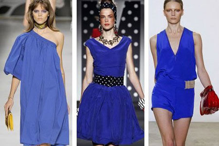 从浅蓝色到矢车菊蓝,蓝色在本季的秀场上仍继续其强劲的势头。在米兰秀场上,蓝色呈现为生动的钴蓝色与群青色,并且也可与其他亮色如浅绿色、橘色等形成冲突性的组合。而在巴黎秀场上强调的是更为深沉、浓郁的色调,如深群青色和墨蓝色与白亚麻布或丹宁布完美的结合,以低调朴素的形式呈现在我们眼前。