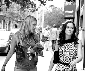 以上对话出自美国话题剧集《绯闻女孩(Gossip girl)》的一对男主角,Nate和Chuck,不要以为《绯闻女孩》的走红靠的是多么深刻的话题,这段话足以概括出全部——金钱和上流生活堆满了迷幻的青春。哦,当然,正如它的名字,它的确拥有一个值得全民疯狂的理由,那就是八卦其中的每一个时尚细节。这是自《欲望都市》开始的传统,时装剧的流行负载了另一个激动人心的主题——流行时尚。这种隐秘的流行,终于在《绯闻女孩》中达到顶峰,其形成的流行现象,早已超越了剧情本身。故事里没有人在思考,他们也不需要,衣服取代了一切,时尚成为最本质的话语:你可以不记得那些主角的名字和故事,但你一定记得他们穿了什么。