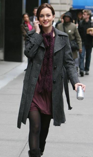 在她选择如邻家女孩的装扮时,她会在细节方面花心思,如普通的制服搭配设计感十足的手镯、长筒袜和平底鞋,令自己显得非常可爱。在她呈现出华丽风范时,她会大胆尝试甜美色泽的连衣裙和图案繁复的手袋来给自己的形象加分,但她又懂得适度的低调,所以通常会在这样的穿着外罩一件V领深色上衣。这也显示出她跟Blair的不同,舒适且有个性,是这种平民灰姑娘的着装要领。