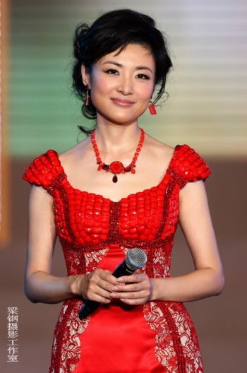 周涛的面容非常标致,五官清秀,精致典雅,给人温婉灵秀的印象!喜庆的大红色固然可以让周涛充分彰显节日的气氛,但是娴雅的蓝绿色系更能突显周涛的雅致与端庄!