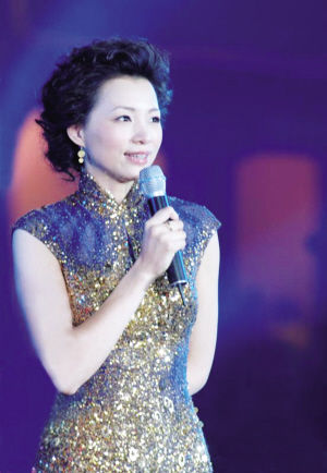 名嘴董卿的主持礼服,金银色当然是必可缺少的色彩元素!金银乃是礼服设计的当家元素之一,金色洋溢着温暖的华丽,银色演绎着脱俗的亮丽,总之,金银又让董卿成为舞台的焦点!