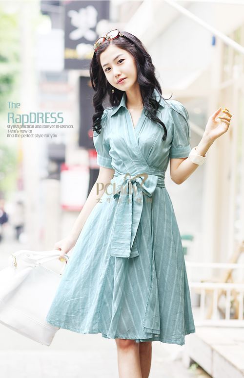 白色和蓝色的碰撞出的海军风格,让你看起来无敌清爽。公主泡泡短袖会使胳膊视觉上更加纤细。
