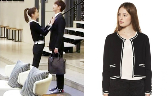 Tips:小香风针织外套+白色衬衣+黑色紧身裤