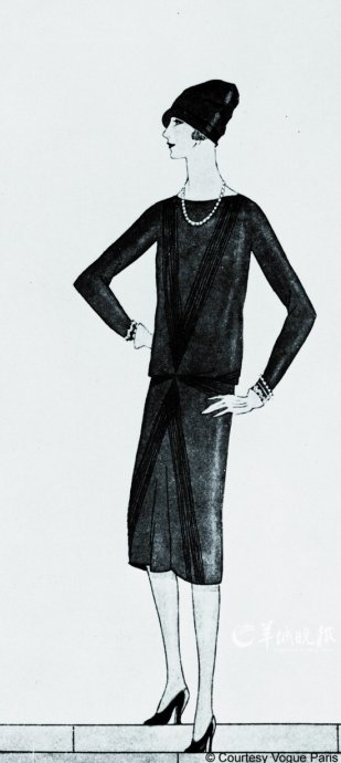 小黑裙可作为晚会或鸡尾酒会礼服,剪裁简洁且通常为短款。时尚历史可以追溯到Coco Chanel在1926年的设计(见下图),设计初衷就是要让其长久流行、多功能、价格适中、通行于各类市场而且颜色低调。