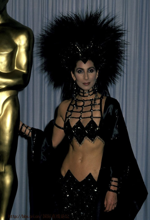 1986年,雪儿(Cher)身着美国著名时尚设计师卜麦琪为其设计的一套惊艳的小黑裙出席当年的奥斯卡颁奖典礼。造型可谓惊世骇俗,有毒辣的评论将其形容为“一个被黑蜘蛛上了身的拉斯维加斯舞女”。不过这样的瞠目结舌也正符合她音乐圈老妖,时尚界奇葩的equity。