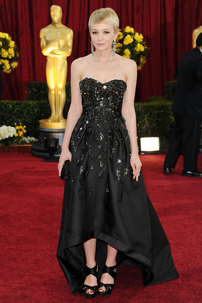 因电影《成长教育》(An Education)而获第82届奥斯卡金像奖最佳女主角提名的凯瑞•穆里根(Carey Mulligan)身着黑色Prada抹胸礼服,这件长裙上的金属饰品居然是小刀、小叉和小剪子。