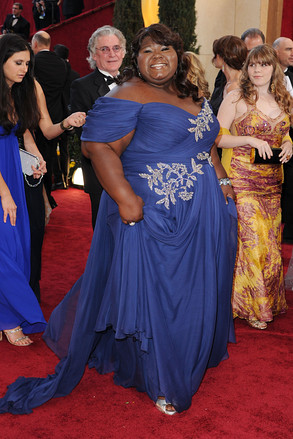 《珍爱》(Precious)获最佳女主角提名的加布丽•西迪贝(Gabby Sidibe)身穿紫色玛切萨(Marchesa)礼服。