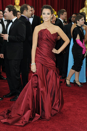 演员佩内洛普•克鲁兹(Cruz)身穿酒红色唐娜•凯伦(Donna Karan)礼服。