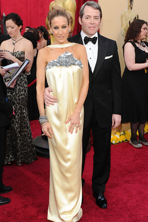 女星莎拉•杰西卡•帕克(Sarah Jessica Parker)与丈夫马修•布罗德里克(Matthew Broderick)一同亮相,她穿的是香奈儿(Chanel)礼服。