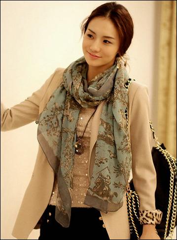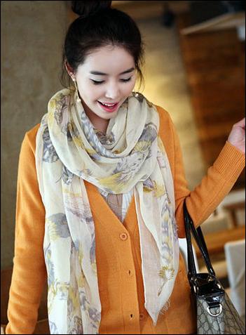 斑斓的花朵是最灿烂的风景,服装搭配上绚丽的花朵围巾,应景应时。搭配不同的服装都有不同的美丽,花朵就是MM的化身!