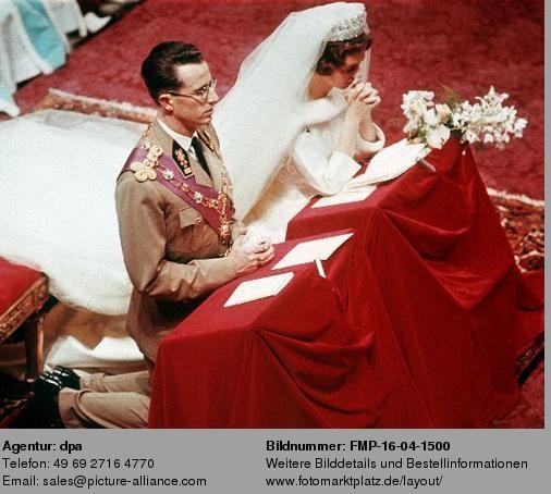 - 1960年12月15日,30岁的比利时国王博杜安一世,在布鲁塞尔迎娶Fabiola de Mora y Aragon,一位西班牙女贵族。她比国王大两岁,这就是后来的“Fabiola王后”。他们两夫妻膝下无子,1993年博杜安一世心脏病突发去世后,就由王弟,上面早他们一年结婚的阿尔贝继位。