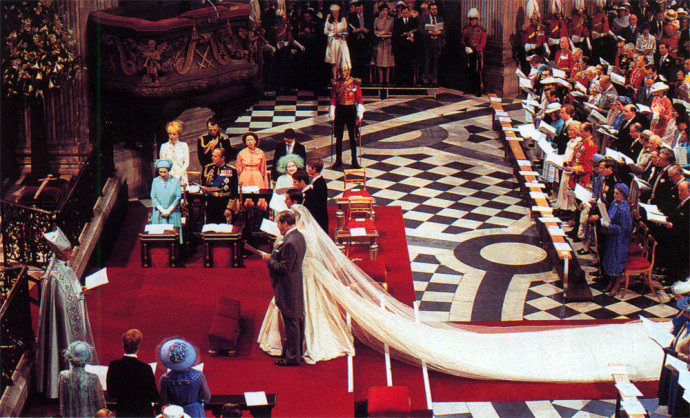 - 1981年7月29日,英国王储查尔斯在伦敦圣保罗教堂迎娶第八代斯宾塞伯爵之女,戴安娜·斯宾塞。有2500位来宾与全球8亿电视观众一起见证了这场世纪婚礼。1996年他们正式离婚,一年后,戴安娜死于法国巴黎的一场车祸。2005年4月9日,查尔斯低调地与卡米拉·帕克·鲍尔斯再婚。