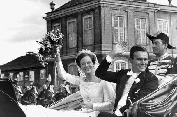 - 1967年6月10日,27岁的玛格丽特,丹麦国王弗雷德里克九世和瑞典公主英格丽德的长女,嫁给法国的亨利·德·蒙佩兹伯爵。伯爵这一年33岁,他曾是法国驻英国的大使,与玛格丽特在伦敦相识。1972年1月14日,玛格丽特登基,成为丹麦历史上的第一位执政女王。