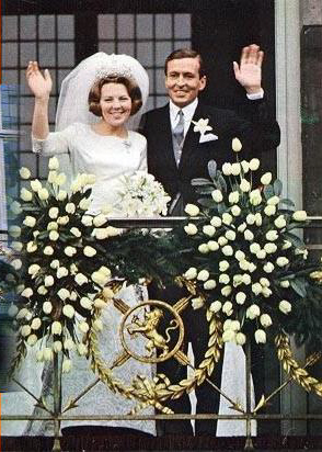 - 1966年3月10日,28岁的荷兰公主贝娅特丽克丝,朱丽安娜女王的女儿,在阿姆斯特丹嫁给一位德国贵族克劳斯(Claus von Amsberg)。1980年4月30日,贝娅特丽克丝接替退位的母亲成为荷兰女王。克劳斯亲王比她年长12岁,于2002年去世。